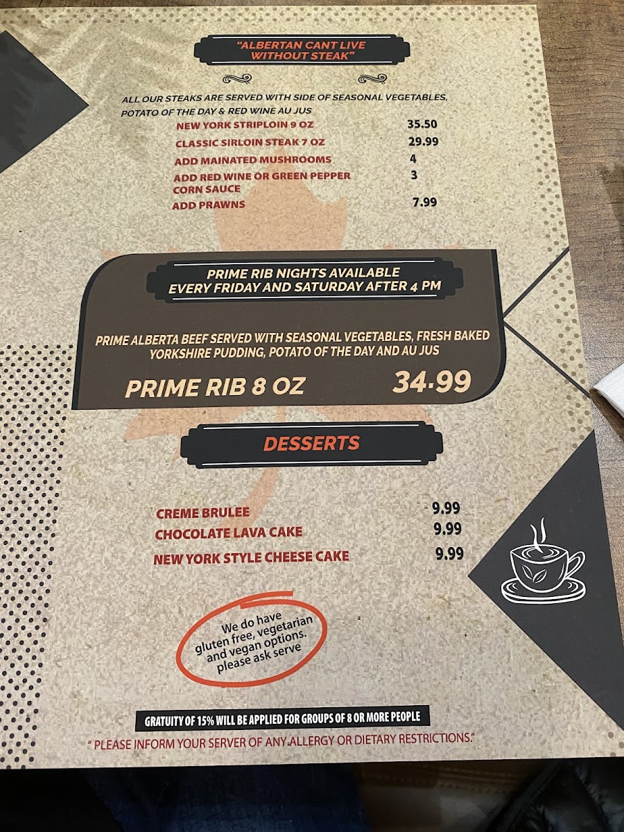 Welcome to The Canadian Eatery, a delightful culinary haven located in Calgary. This charming restaurant invites food lovers to indulge in a menu that embodies the essence of local flavors mixed with international flair. Dive into dishes like the Scallop & Prawn Linguine and the creamy Chicken Fettuccine Alfredo, both brimming with rich, comforting flavors. For steak enthusiasts, the New York Striploin and Classic Sirloin are standout choices, perfectly cooked and juicy.