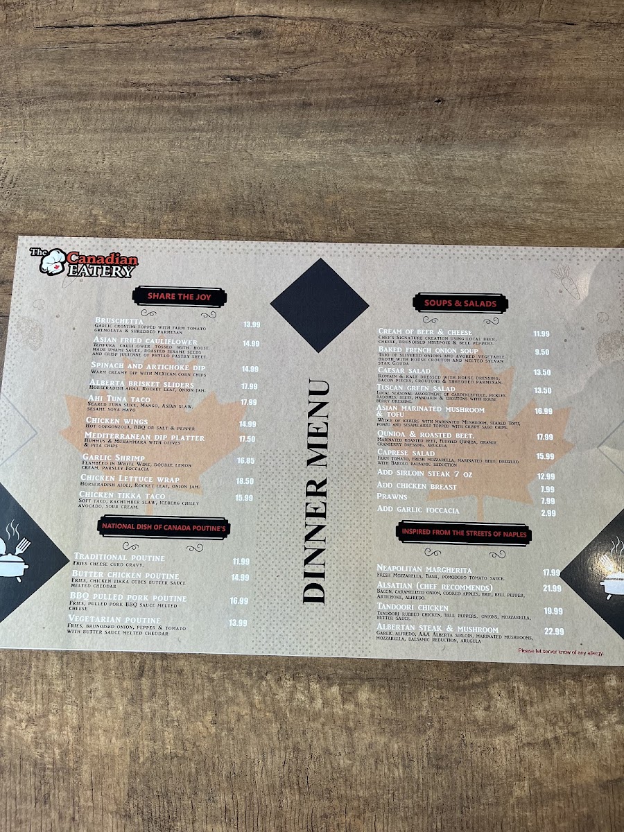The dessert selection deserves a mention too, featuring delights such as Creme Brulee and Chocolate Lava Cake, sure to sweeten your dining experience. Customer reviews echo the restaurant’s warm ambiance and attentive service, making it feel like a treasured neighborhood gem. If you're craving flavorful plates in a cozy setting, The Canadian Eatery is a must-visit destination!
